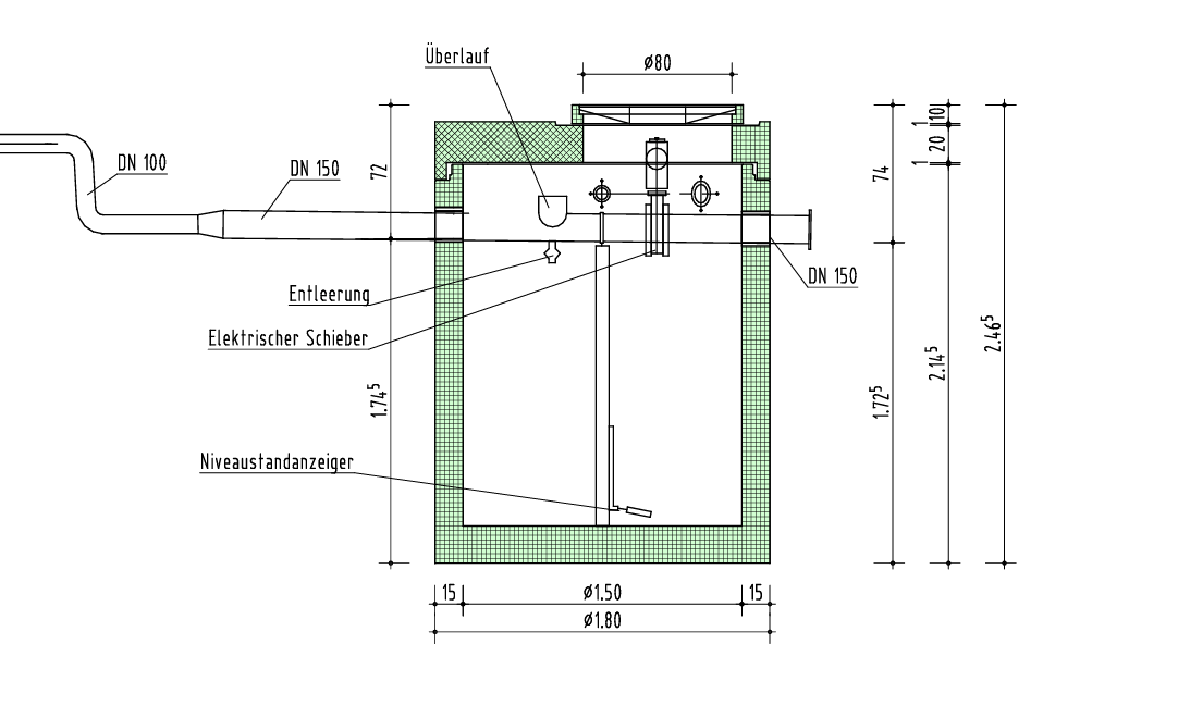 Der Durchmesser der Zu- und Ablaufleitung ist in DN 100, DN 150 und DN 200 möglich.